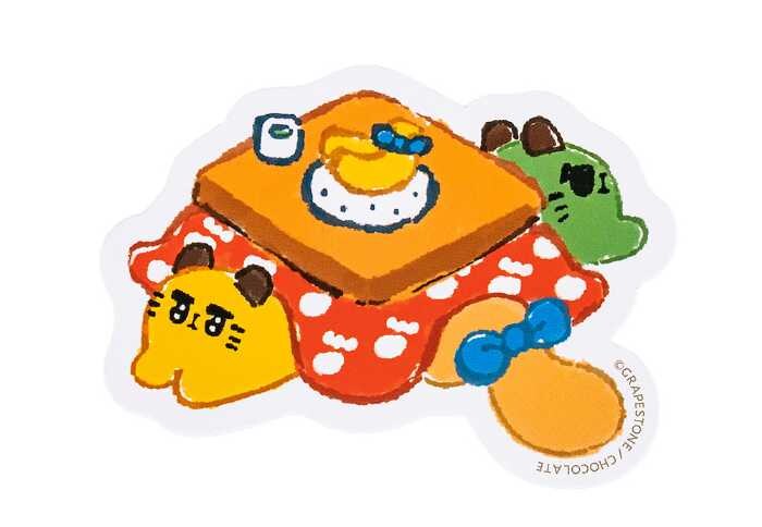こたつで過ごすばにゃ奈とまっちゃ、ラテの可愛いイラストで、お正月のひとときがさらに楽しく♪