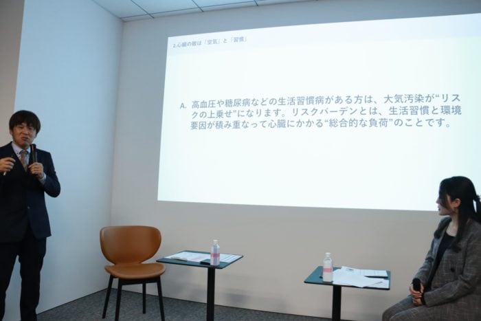 高血圧や糖尿病といった生活習慣病の方は、このPM2.5によって心臓疾患のリスクが上乗せ(リスクバーデン)されていくため、より注意が必要だと訴えかけました。