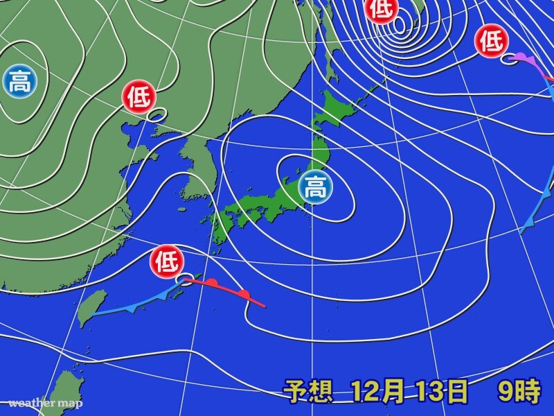 今夜、低気圧が発達しながら北海道を通過し、千島付近に進む見込みです。寒冷前線が本州を通過し、明日は北日本、東日本を中心に冬型の気圧配置が強まるでしょう。このため、北海道や日本海側では雪や吹雪となる見込みです。