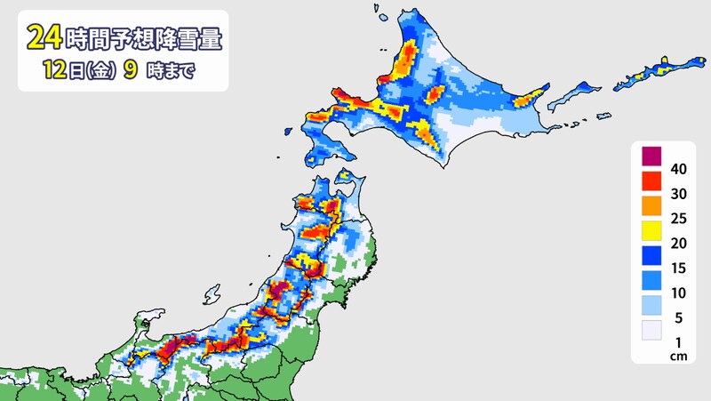明日(12日・金)にかけて強い冬型の気圧配置となるため、安比高原、蔵王温泉、ネコマ マウンテンなどいずれも良質のパウダーが期待できそうです。あすにかけてゲレンデトップは20センチから30センチほど積もるでしょう。北よりの風が強く吹雪くため、リフトの運行や交通機関の情報は要チェックです。