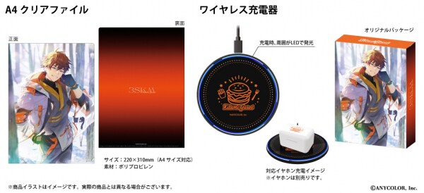 あわせて、撮り下ろしビジュアルの「A4クリアファイル(1種類)」および「ワイヤレス充電器(1種類)」も販売いたします。