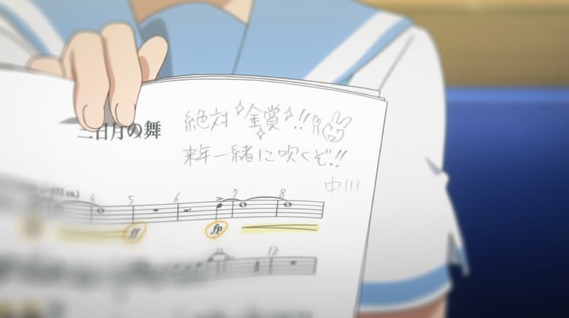 同じユーフォ担当で2年生の夏紀(CV:藤村鼓乃美)から声をかけられた久美子(CV:黒沢ともよ)は、ちょっと不安。なぜなら、先輩である夏紀はオーディションに落ちたからだ。