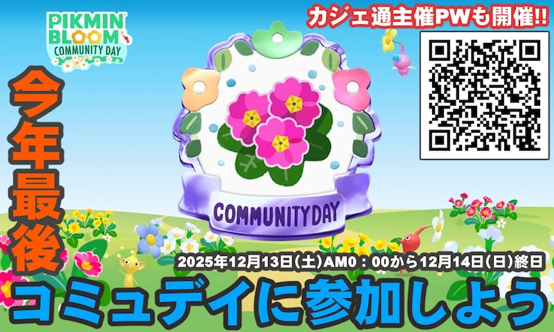 2025年12月13日と14日(土・日)、位置情報ゲーム『ピクミン ブルーム』毎月恒例のグローバルイベント“コミュニティ・デイ”が開催される。