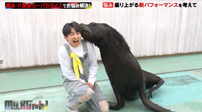 神奈川県の人気水族館「横浜・八景島シーパラダイス」でM!LKが出会ったのは、“海のライオン”の異名を持つアシカ科の生き物「オタリア」のオス。このオタリアこそが、シーパラダイスの22歳大ベテランパフォーマーのレオくんだ。体重200キロの巨体、大きく鋭い牙、首元の立派なたてがみ、地を震わせるような咆哮は、まさにライオンのよう!
