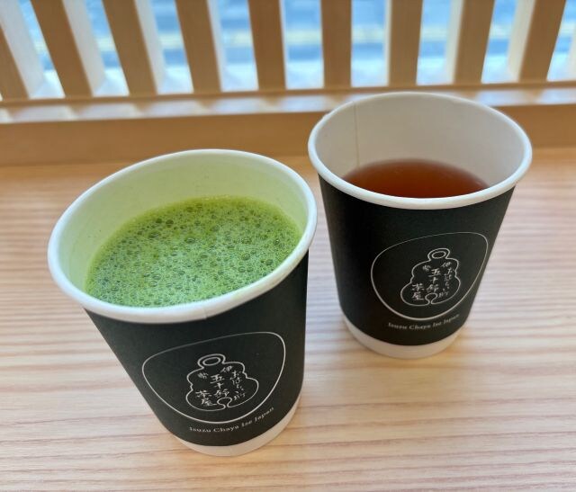 左から「抹茶ラテ」650円、「あずき茶」500円