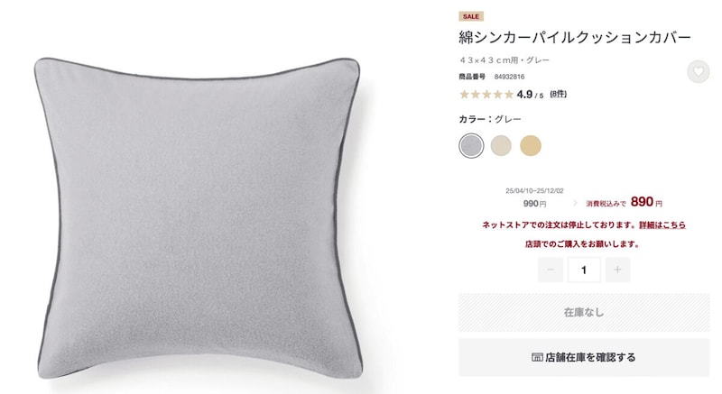 無印良品の「綿シンカーパイルクッションカバー」が値下げとなり話題となっています。