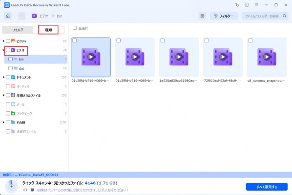 ステップ2.スキャンが完了した後、検出されたデータが一つずつ確認することができます。