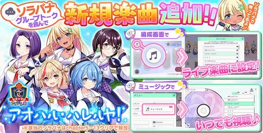 橙美女学院アイドル部が歌う新規楽曲「アオハル・ハレルヤ!」を追加実装いたしました。