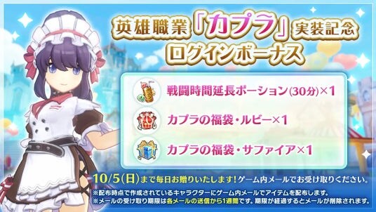 <ヒーローアップデート「メイド服の職員 カプラ」概要>