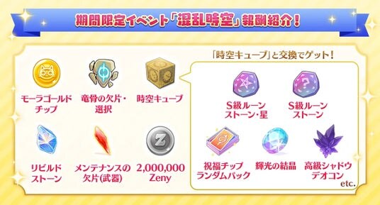 大量の「時空の塵」が押し寄せる「混乱時空」ダンジョンに挑み、「時空巨竜」を正しい世界線へと導びきましょう。