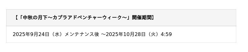 ■「中秋の月下~カプラアドベンチャーウィーク~」開催!