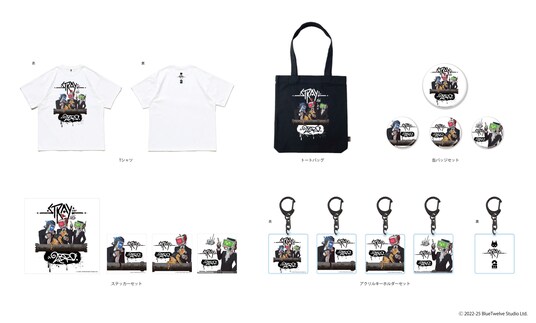 Tシャツ、トートバッグ、缶バッジ、アクリルキーホルダー、ステッカー