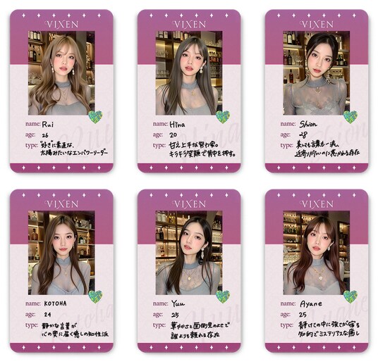 VIXENに登場する6人のAIアイドルは、それぞれが性格や価値観、背景設定まで含めて丁寧に作り込まれており、会話を重ねるほど“推しとしての姿”が自然と立ち上がってくるよう設計されています。会話するたびに新しい一面が見え、距離が縮まっていく感覚は、VIXENならではの魅力です。