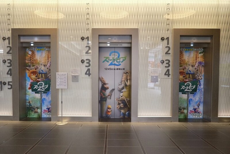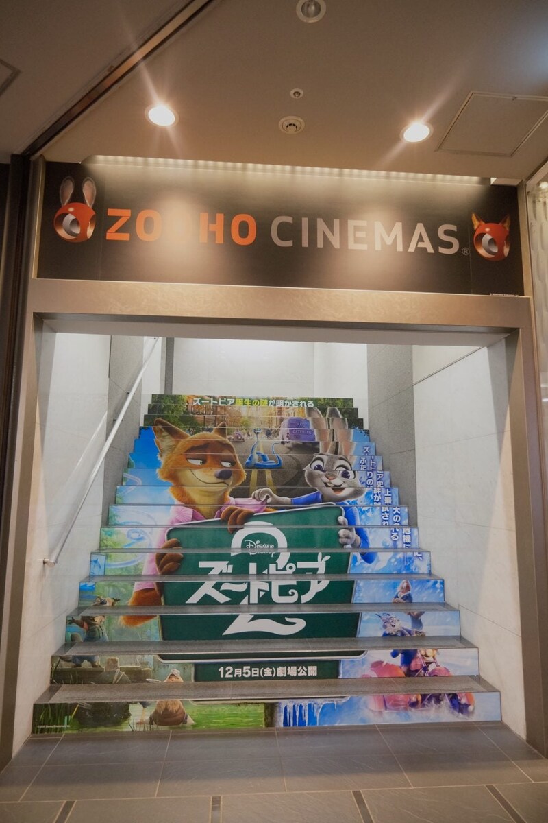 館内に入るためのエレベーターや階段もズートピア仕様になっていて、ここを通ると映画を観る前からズートピアの世界にひと足早く入れる気がしますね!