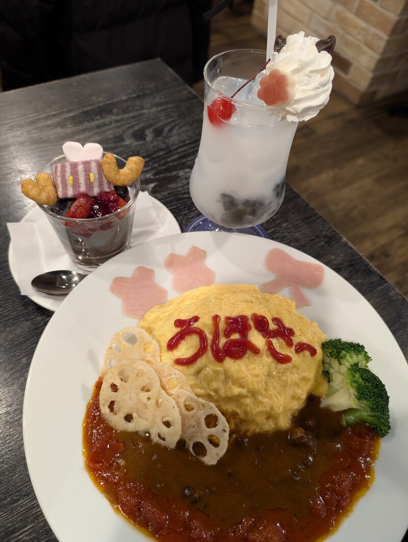 「ロボ子さんのろぼさーオムライス」1,780 円(税込)、「ろぼさー♡パフェ」1,300 円(税込)などをいただきました。スパイスの効いた食欲そそるオムライスに、ロボ子さんも絶賛したという特製パフェの相性もバッチリ! ファンミは終了しましたが、カフェはまだまだ営業中です。
