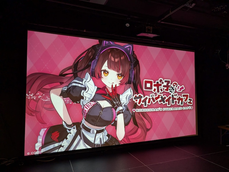 こちらはロボ子さんのスタンディパネル 。一緒に写真を撮ったり、ロボ子さん監修の「ろぼさーに捧げるロボティック・クランベリーカフェオレ」800円(税込)などをいただきながら開幕を待ちます。