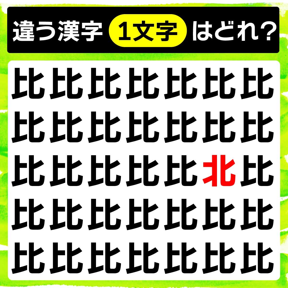 違う漢字は、上から3列目、右から2番目の文字でした!