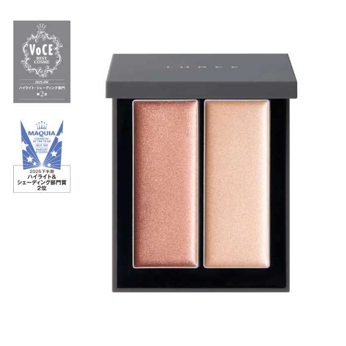 2025年下半期、THREEの新商品が多数の美容アワードで輝きました♡香水の「エッセンシャルセンツ R 01」はVOCE香水部門1位、ハイライトの「シマリング グロー デュオ R 01」も上位ランクイン。さらに、ヘアケア・マスカラ・UVクリームなど、多彩なアイテムが各誌でベストコスメに選出されています。今回はそんな話題のTHREEアイテムを詳しくご紹介します♪
