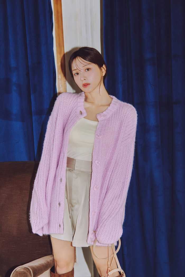 ざっくり感が可愛いカーディガン(11,000円)は、パンツ(9,900円)やキャミソール(4,950円)との組み合わせでこなれムードに。