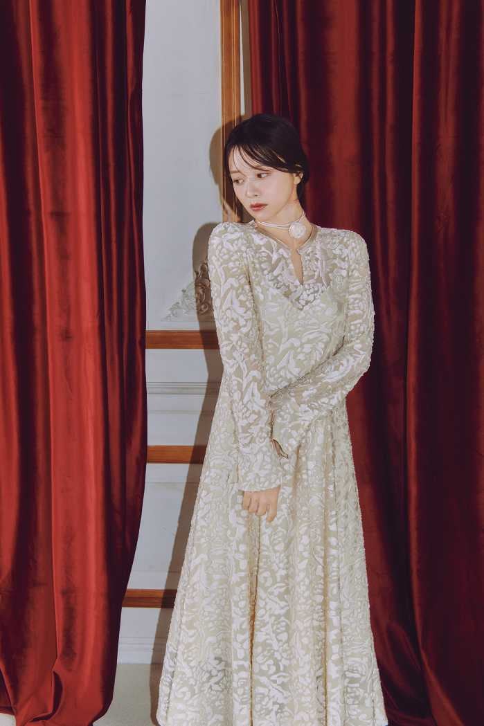 特別な日を品よく彩るワンピース(22,000円)は、程よいエレガンスが魅力。お呼ばれシーンにも映える一枚です。