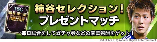 1日1回「柿谷セレクション!プレゼントマッチ」で試合をすることで「TIMESLIP COMMON柿谷曜一朗ガチャ券」や選手育成に使えるアイテムなどがもらえる「柿谷セレクション!プレゼントマッチ」を開催!