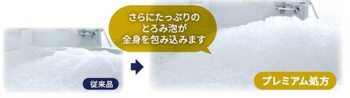 贅沢泡とろ プレミアムシリーズは、従来品比で約1.4倍※の泡立ちを実現。たっぷりのとろみ泡が肌を優しく包み込み、入浴中の保湿感も抜群です。