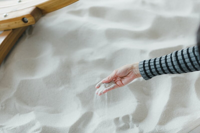 なんと、部屋の中のリビングに砂浜が! ビーチにあるカバナをイメージした内装は、プライベートビーチにいるようなリゾート感にあふれています。
