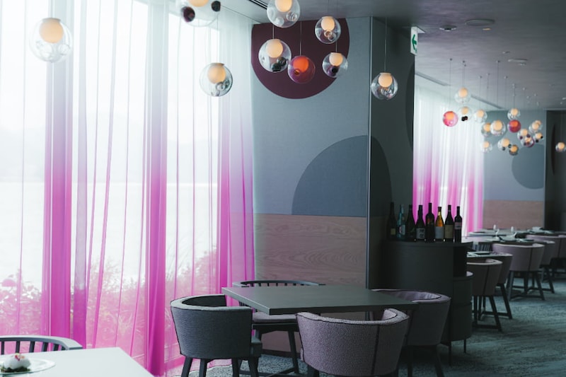 まずはエントランス。下関の名産・ふぐから着想を得たふぐ柄の内装にワクワク。