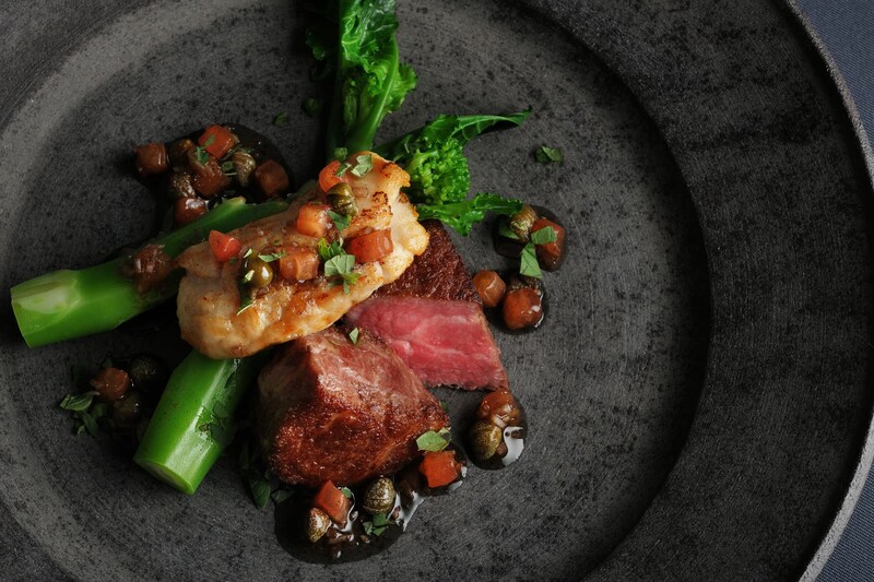 ふぐの白子と牛フィレ肉