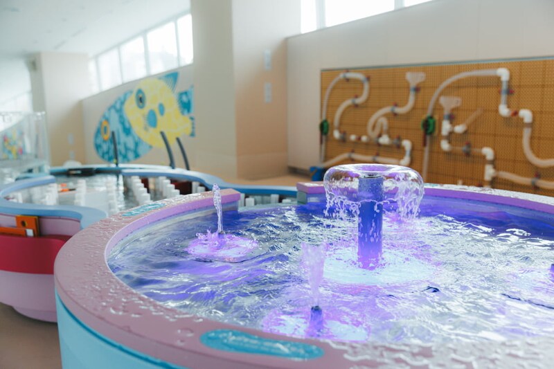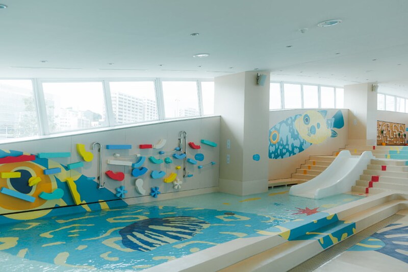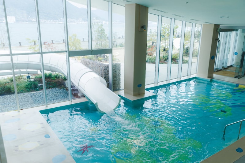 小さな子どもと楽しめるプールや、関門海峡の潮の流れと同じ速度が出るように設計された全長30mのウォータースライダー、じゃぶじゃぶテーブルなど、子どもが目を輝かせそうな仕掛けの数々。