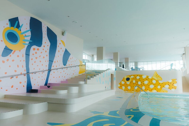 いろんな種類のふぐのイラストが、プール内になんと大小15匹も描かれているそう。