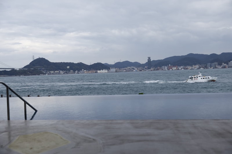 そして、大人のお楽しみはインフィニティプールです。プールの水面と関門海峡がつながっているように見える設計で、遊泳禁止の関門海峡に浮かんでいる気分を味わうことができます。