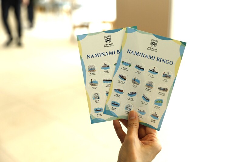 宿泊者限定のビンゴは「見えた景色」を選んでいくルール。「関門橋」「コンテナ船」「漁船」などがランダムに並んでいて、ビンゴになると限定シールももらえるそうです。