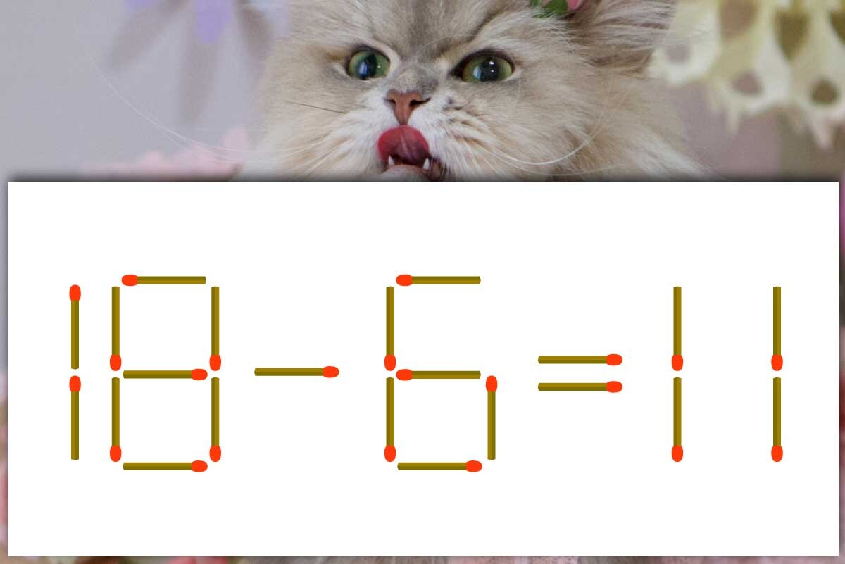 【問題】1本だけマッチ棒を動かし、正しい式にしてください。