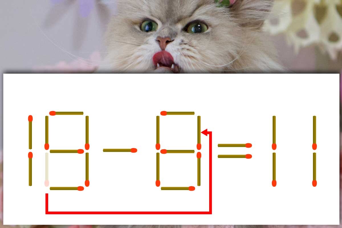 「8」の左下にあるマッチ棒を1本、「6」の右上に移動させて「8」を作り、「19-8=11」にする。※解答は複数ある場合があります。
