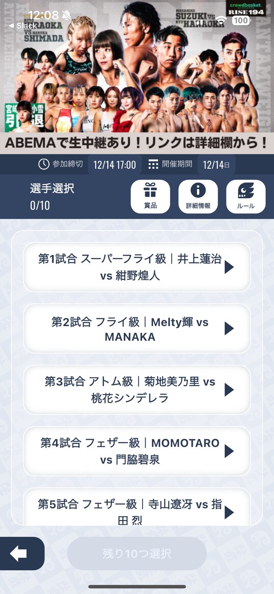 なんドラでは、今週末に開催される「crowdbasket presents RISE 194」をよりお楽しみいただくため、全10試合を対象に予想企画を開催中です!