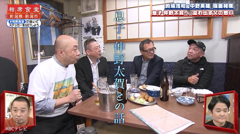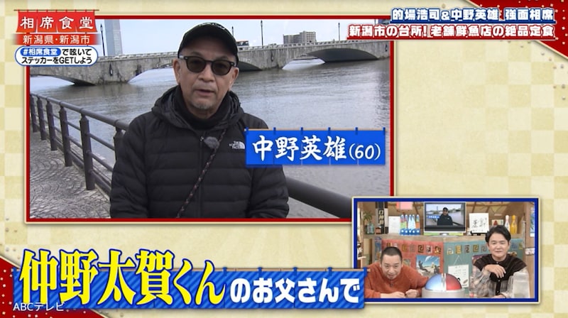 バラエティ番組『相席食堂』(ABCテレビ)に、NHK大河ドラマ『豊臣兄弟!』(2026年1月4日放送開始)の主演俳優・仲野太賀の父親で俳優の中野英雄が登場! 息子・太賀にまつわる、英雄のこわ~いエピソードや、その厳つい風貌からは想像できないデレデレっぷりが明らかになった。