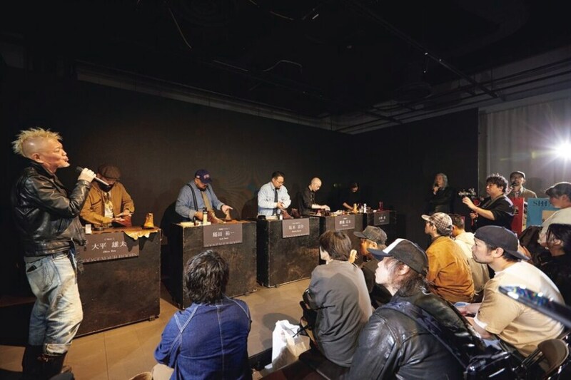 天神ワークスでは、A-1グランプリの投票コーナーも設置。今回は革ジャンのエイジングモデルが公開された。