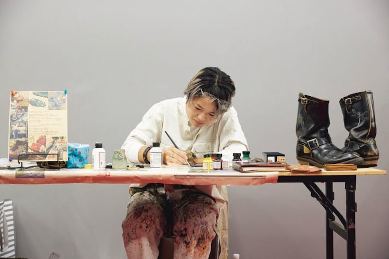 イラストレーターのImaiさんによるレザーペイントも開催。愛用品にペイントしてもらうことで、世界でたったひとつだけのアイテムに変身するというわけ。