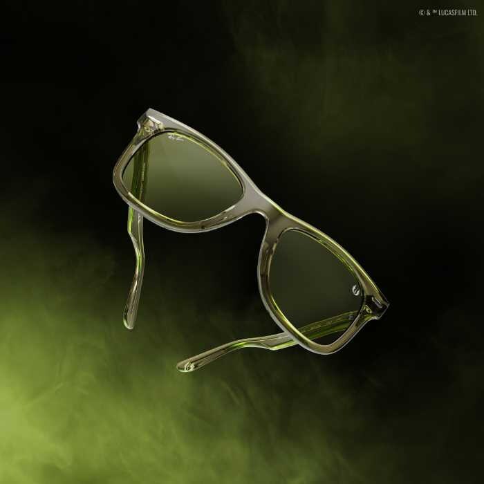 「マスターヨーダウェイファーラー」はセージグリーンの透明感あるフレームと同系色レンズが穏やかな雰囲気を演出し、テンプルにはジェダイ・オーダーの紋章と“May the Force be with you”を刻印(37,840円)。