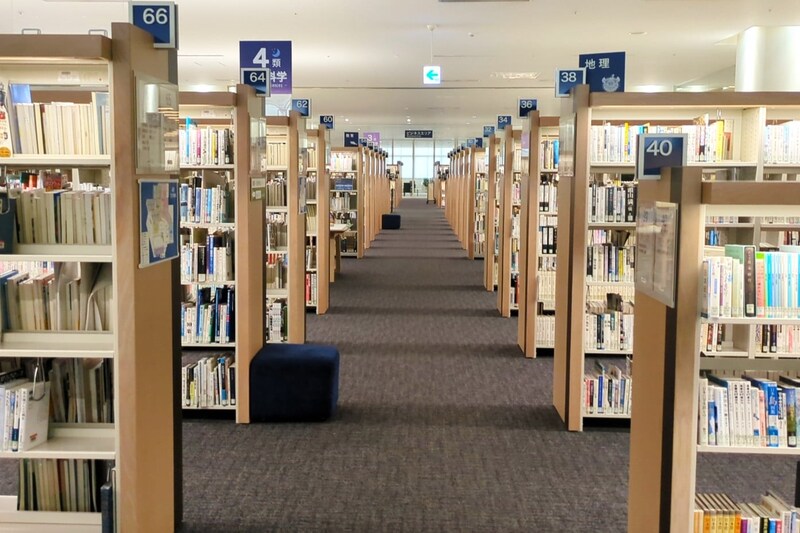 4階「一般閲覧エリア・ビジネスエリア・情報エリア・多文化エリア」は、約13万冊の本が並ぶ館内で最も大きなフロアになっています。