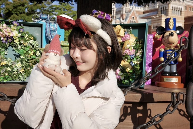 クリスマス仕様のカチューシャやセーターを身につければさらにパークを満喫出来ちゃいます。ブラジルさんが愛でているのは、クリスマスの妖精「リルリンリン(Li’l RingRing)」のぬいぐるみバッジです。