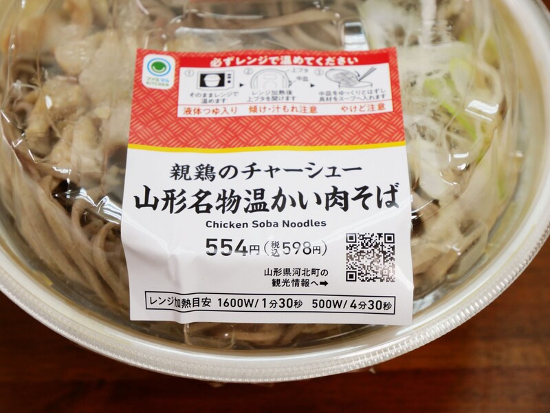 ファミマのグルメは全体的にハイレベルですが、地方限定グルメは、レベルの高さが際立っていると感じるのです。たとえば東北地方限定で販売されている「親鳥のチャーシュー 山形名物温かい肉そば」。これ税込598円なのですが、税込598円とは思えないレベルで満足度が高い。