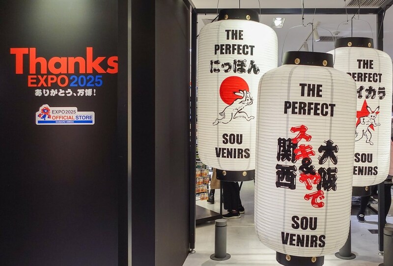 大阪・関西万博内にあった「会場内オフィシャルストア 東ゲート店」では、大丸・松坂屋の創業期である江戸時代に着想を得た「元禄時代の大店(おおたな)/EXPO2025 Ver.」をコンセプトに展開。館内を彩っていた、隈取メイクのすもうレスラー、風神・雷神をモチーフにしたねぶた、商品の名前を掲げた提灯ウォールなど、日本の美意識や遊び心あふれるデザインが話題を呼びました。