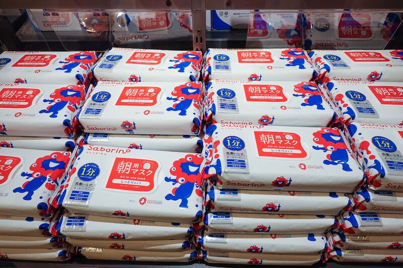 洗顔・スキンケア・下地までこなす朝用オールインワンマスク。ミャクミャクデザインがかわいく“気軽に渡せるお土産”として会場内オフィシャルストアでも人気でした。