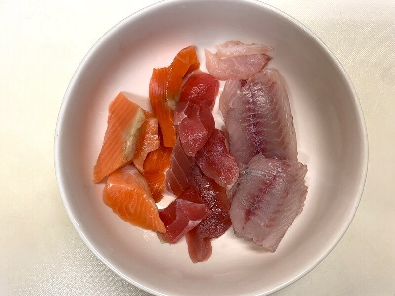 ▼ちなみに白身魚はイサキの幼魚「うりぼう」を使いました。成魚のイサキは1尾数千円もする高級魚なのに、うりぼうは1尾10~20円と安い未利用魚だよ。味は成魚とほぼ変わらないので超お買い得だよ!