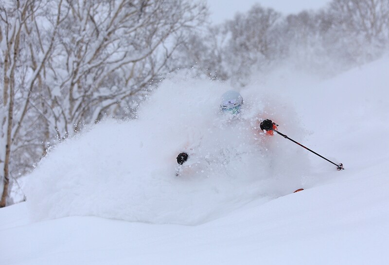 というのも、ニセコ東急 グラン・ヒラフはコース名は付いていないが、見晴らしコース他、ツリーランポイントは非常に多い。あちこちで自然に木がたくさん生えていて、その中を自然に滑ることができるし、コース脇でも楽しめる。どこでもそれぞれの滑走レベルに合わせたツリーランにチャレンジできるのが魅力だ。上の写真もそんなシチュエーションでの一枚だ。北海道の緯度の関係で森林限界が低いため、標高がそれほど高くないスポットでも木々の間隔が密過ぎない。これも北海道のスキー場は総じてツリーランが楽しめる理由のひとつ。