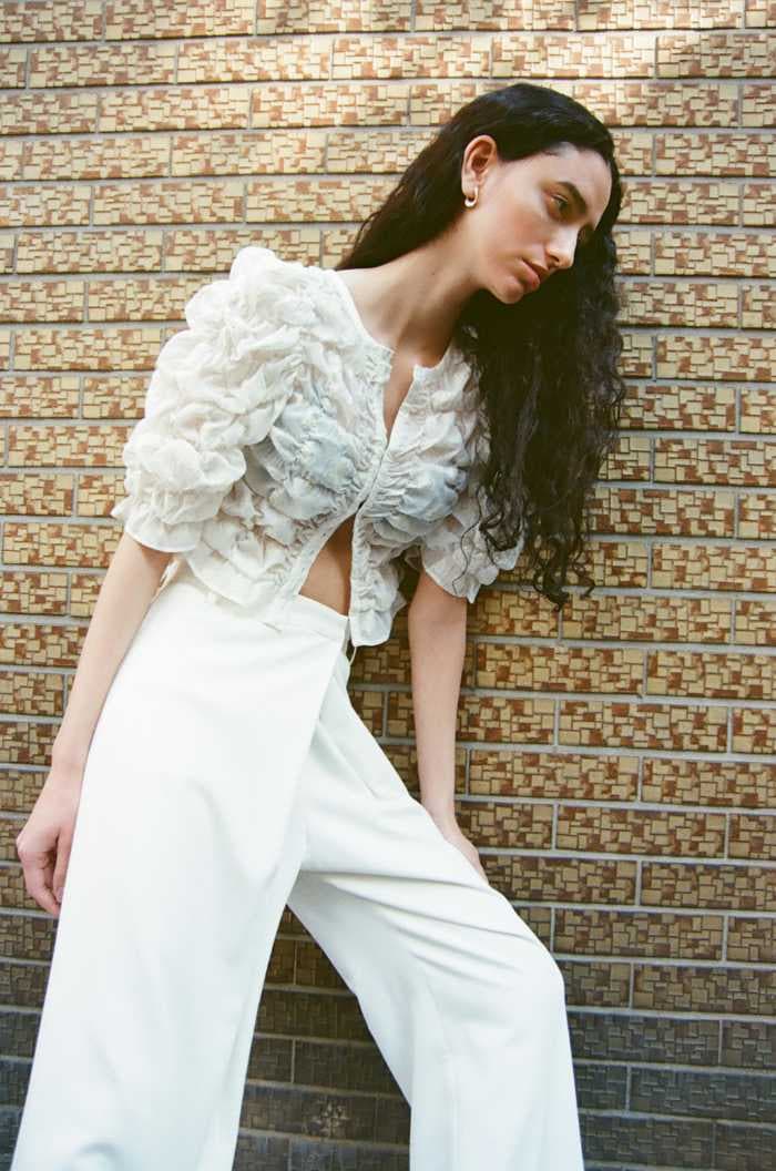 MINAMI TANAKA×CLANE W FACE FLOWER JACQUARD SHIRRING TOPS