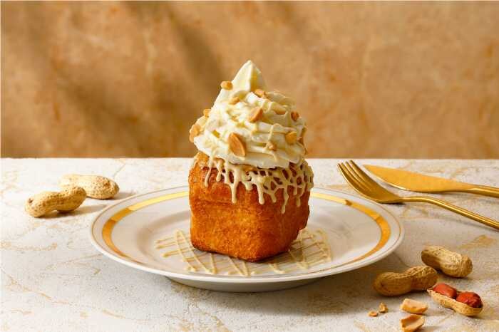 「ドレ・デニッシュソフト」(880円/税込)はふんわりデニッシュにソフトクリームをのせ、ピーナッツダイスとチョコソースをトッピングした限定品。