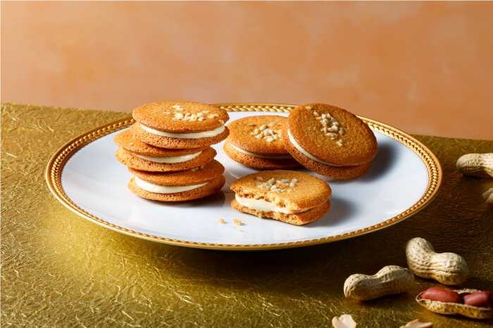 「ドレ・チュイールサンド」(5個入1,188円/10個入2,160円)は発酵バターとピーナッツ香るチュイールにピーナッツチョコクリームをサンドした新商品。